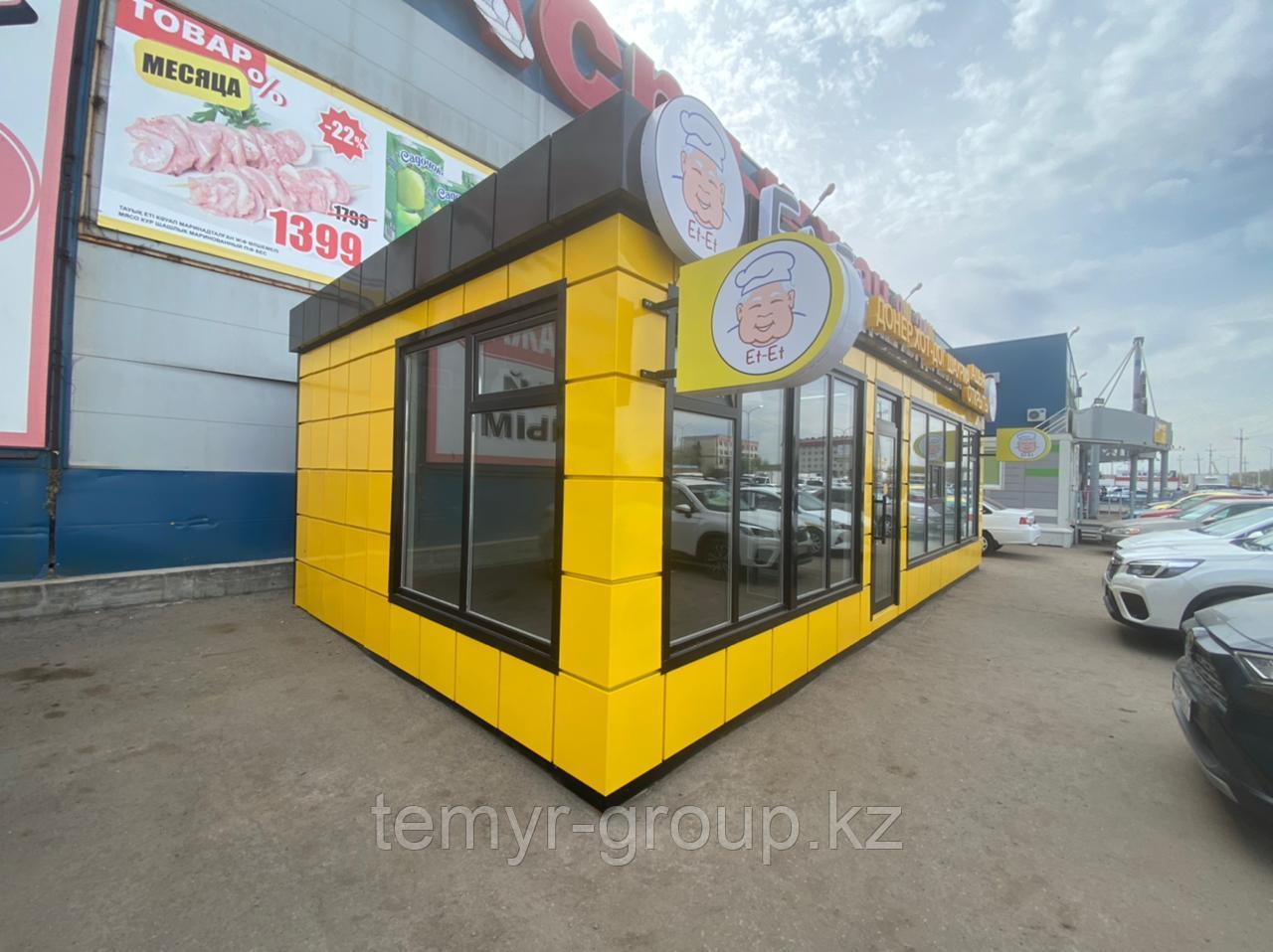 Подобные малые архитектурные формы, изготовляемые ТОО «Темир Астана», имеют прочный каркас и утеплитель в своем строении. Облицовка киосков и ларьков производится профнастилом. Для электропроводки строений используется огнестойкий провод защищенный металлорукавом. Также предусмотрены электрощиты и электросчетчики и огнетушители. Для изготовления крыш торговых павильонов используется из оцинкованный профнастил. Для сборки киосков, ларьков и павильонов не требуется установка фундамента.